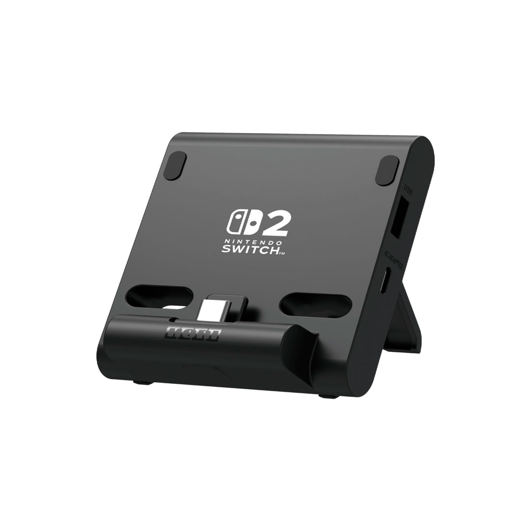 Soporte de juego ajustable con doble puerto USB para consola Nintendo Switch. Permite jugar en modo tabletop mientras se cargan accesorios o controles mediante conexión USB. Diseño plegable y compacto con ángulo de inclinación ajustable. Base estable para mejorar la comodidad durante sesiones de juego. Compatible con Nintendo Switch.