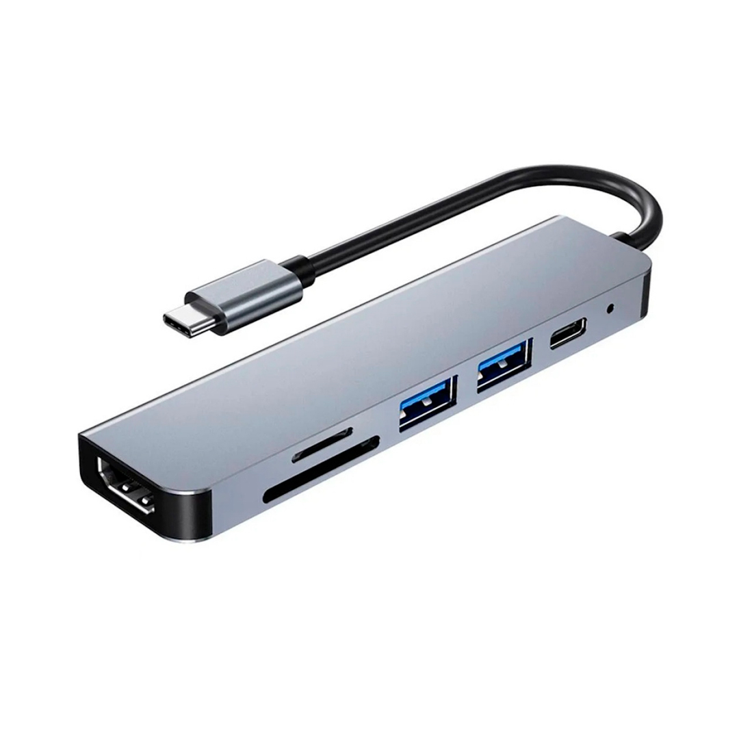 Adaptador / Lector / Hub 6 en 1 USB-C a HDMI 4k/ SD/TF/USB 3.0/ USB-C (T00392)