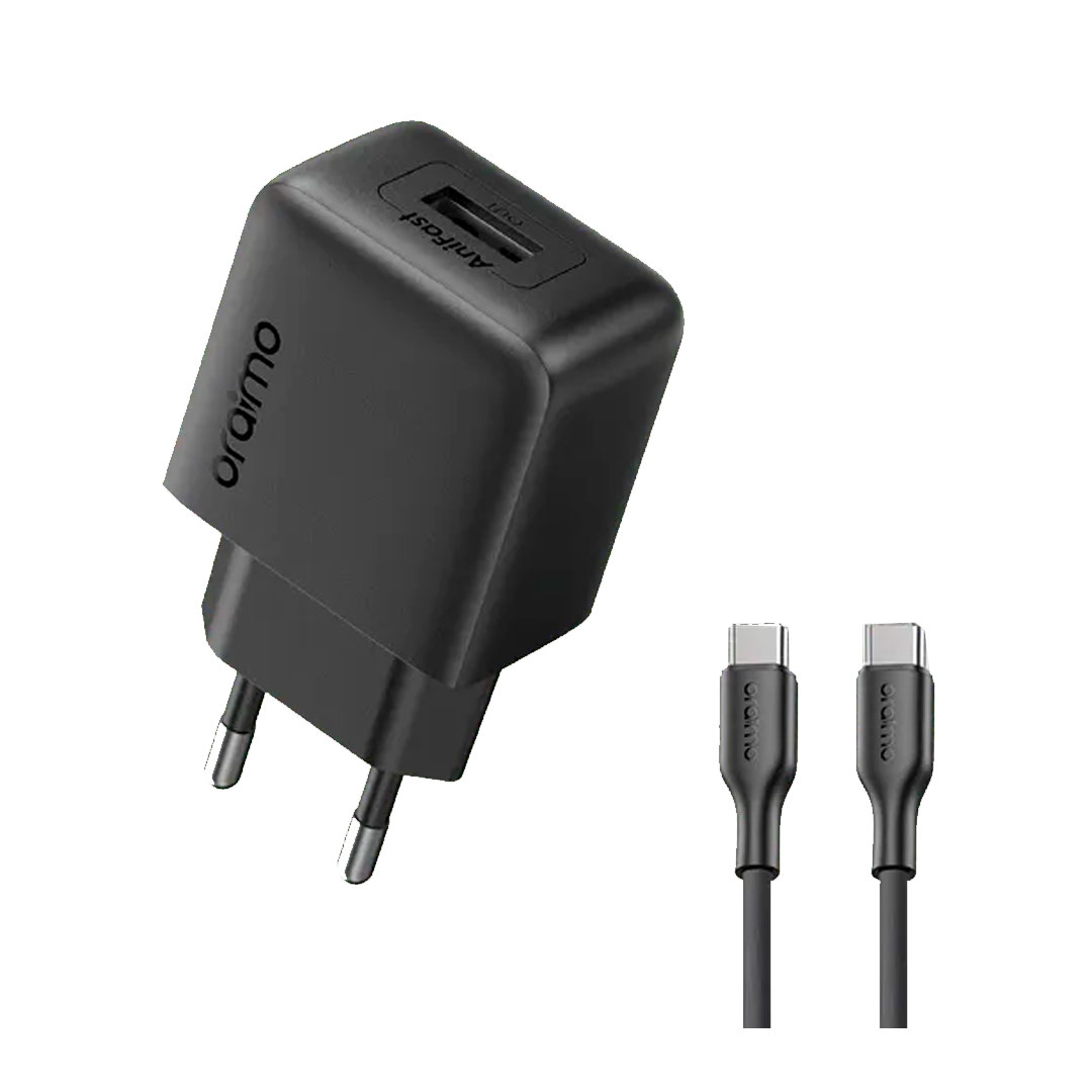 Kit Cargador OCW-5351ECC-BK Oraimo USB-C 35W GaN con Cable USB-C a USB-C Negro. Cargador con salida USB-C y potencia hasta 35 W. Tecnología GaN para mayor eficiencia. Compatible con PD 3.0, QC 3.0, PPS y SCP. Incluye cable USB-C a USB-C de 1 m. Sistema de protección múltiple. Diseño compacto.