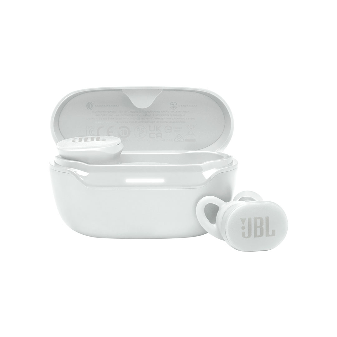 Auriculares Inalámbricos Endurance Race 2 JBL True Wireless Bluetooth 5.3 IP68 Blanco Auriculares TWS con certificación IP68 (auriculares) e IPX2 (estuche). Driver dinámico de 6,8 mm con respuesta de 20 Hz a 20 kHz. Bluetooth 5.3 con micrófono integrado para llamadas. Autonomía hasta 48 h (12 h + 36 h estuche). Tiempo de carga 2 h