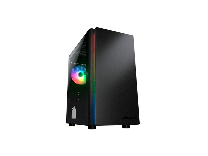 Gabinete Cougar Purity RGB negro. Mini ITX / Micro ATX El diseño compacto de Purity RGB le permite instalar cinco ventiladores, un radiador de refrigeración por agua de 240 mm y un enfriador de CPU de 160 mm. USB 3.0 x 2, USB 2.0 x 1, Mic x 1 / Audio x 1, RGB Button, Reset Button