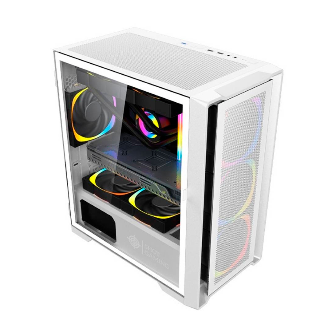 Gabinete HSI SHOT-SUP-8505 WHITE. Conexiones Frontales: USB 3.0 x 1, USB 1.0 x 1, HD Audio x 2. Lateral: De Cristal Templado. - No incluye fanes