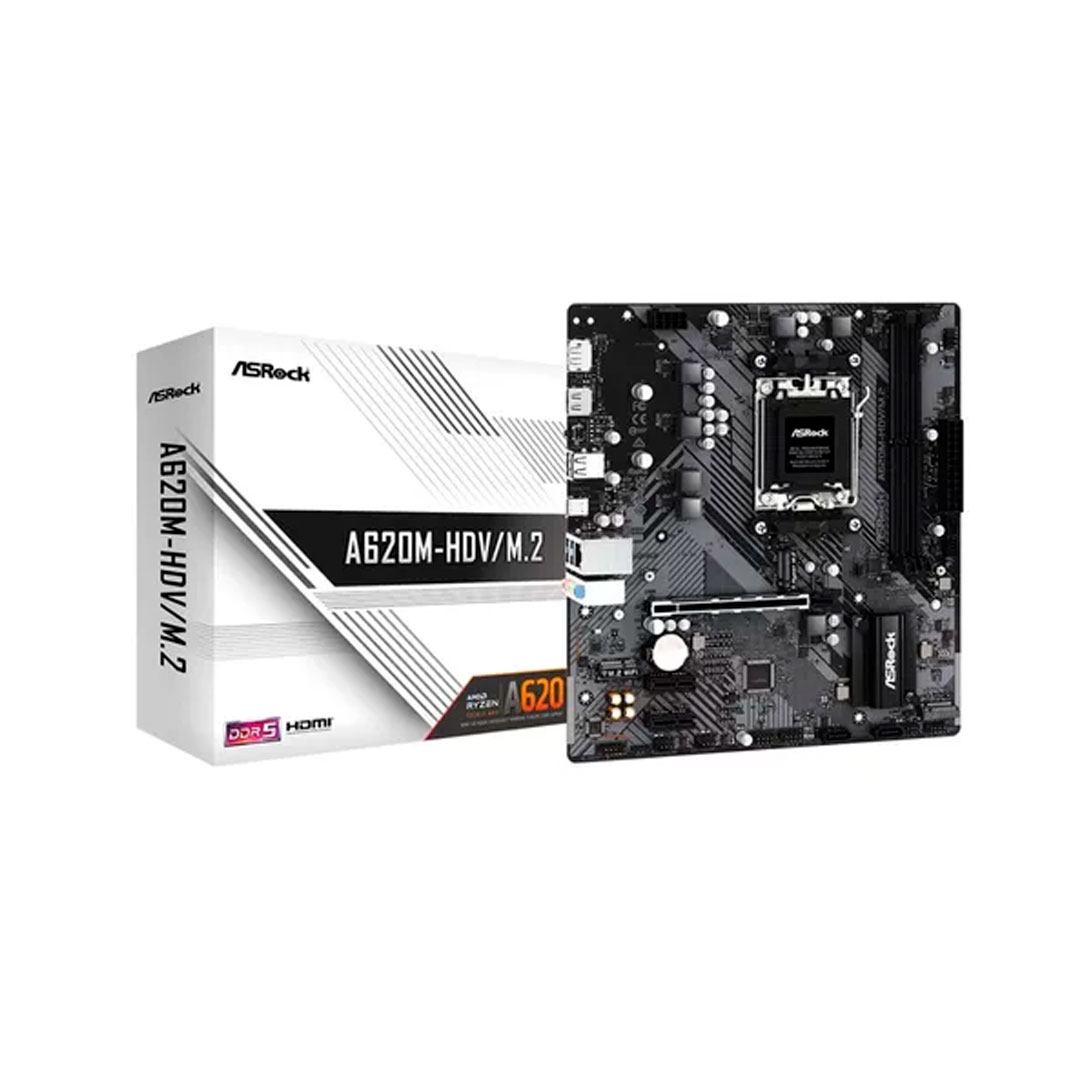 Motherboard Asrock AMD A620M-HDV/M.2 . Compatible con procesadores AMD Ryzen™ 7000 Series (Socket AM5). Tecnología de memoria DDR5 Dual Channel con soporte hasta 96GB y velocidades de hasta 7200+(OC). Gráficos integrados AMD RDNA™ 2 con HDMI 2.1 y DisplayPort 1.4 (soporta 4K 120Hz). Audio Nahimic 7.1 CH con Realtek ALC897. LAN Gigabit con Realtek RTL8111H. Expansión: 1x PCIe 4.0 x16, 2x PCIe 3.0 x1, 2x M.2 (PCIe Gen4x4). Almacenamiento: 4x SATA3 6.0 Gb/s, RAID 0/1/10. Conectividad: USB 3.2 Gen1 Type-C, 3x USB 3.2 Gen1, 2x USB 2.0, LAN, HDMI, DP. Micro ATX 24.4 cm x 22.6 cm. (90-MXBLL0-A0UAYAZ)
