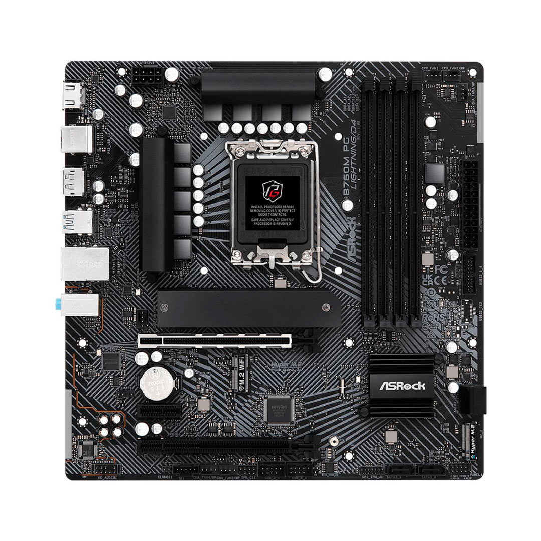 Motherboard Asrock B760M PGL/D4. Compatible con procesadores Intel® Core™ de 14ª, 13ª y 12ª generación (LGA1700). Soporta memoria DDR4 hasta 128GB con velocidades de hasta 5333+ (OC). Gráficos Intel® Xe con HDMI 2.1 (4K @ 60Hz) y DisplayPort 1.4 (hasta 8K @ 60Hz). Audio 7.1 CH HD (Realtek ALC897). LAN Gigabit. Almacenamiento: 2x M.2 PCIe Gen4x4 y 4x SATA3 6.0 Gb/s. Formato Micro ATX.