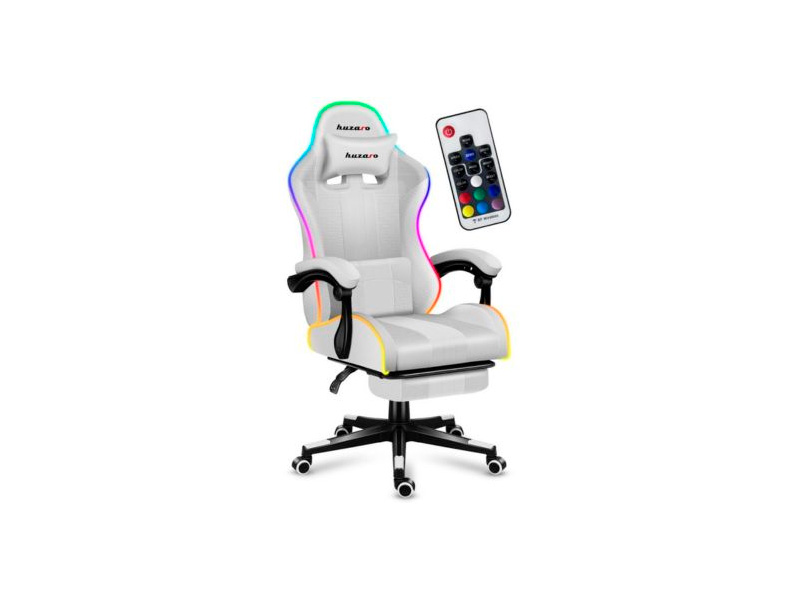 Silla Gamer Huzaro HZ-Force 4.7 RGB Blanco. Silla gaming de tela con iluminación RGB y cómodo reposapiés abatible que permite extender las piernas Con tejidos duraderos y transpirables y un elegante diseño para juegos El asiento garantiza la correcta posición de la espalda con sus cojines lumbares y cervicale De material resistente a los daños y de fácil cuidado Con función SeatRest para inclinar cómodamente el respaldo, reposabrazos blandos y antideslizantes y ruedas de goma de poliuretano que protegen el suelo de arañazos Fuente de alimentación USB del ordenador o powerbank propio.